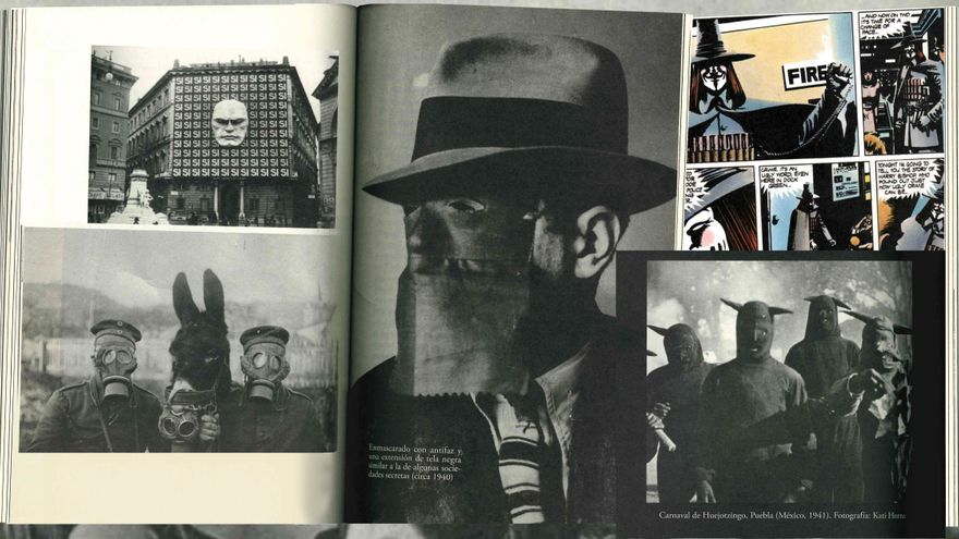 Todo un carnaval salvaje desde los tenebrosos Vigilantes a las antiguas sociedades secretas y los primeros miembros del Ku Kux Klan hasta Durruti pasando por el escurridizo Fantômas, la sonrisa siniestra del Guy Fawkes de Alan Moore y David Lloyd en V de Vendetta, el pasamontañas negro del subcomandante Marcos o el multicolor de Pussy Riot.