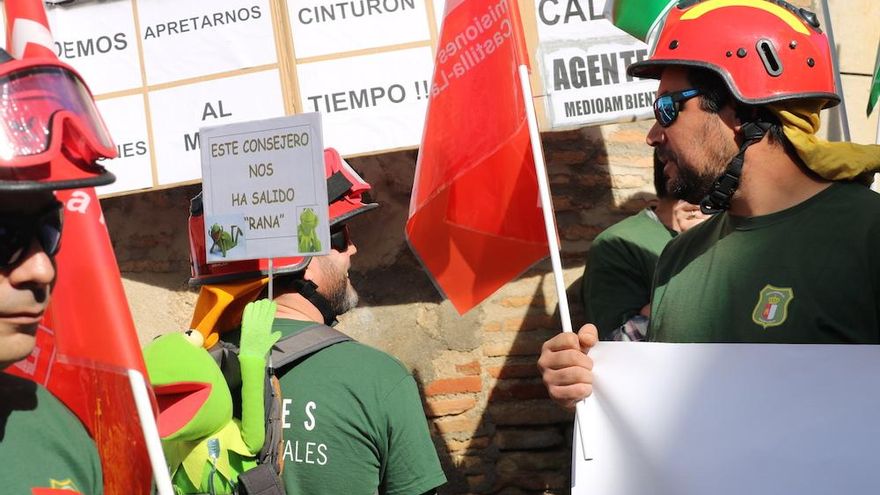 Agentes Medioambientales de FeSP UGT Castilla-La Mancha, CCOO, CSIF y STAS se han manifestado en Toledo para hacer públicas sus reivindicaciones en unidad de acción y para que se tengan en cuenta por el Gobierno antes de acabar la legislatura. El portavoz de FeSP-UGT CLM, José Azcoitia, ha hecho hincapié en las tres exigencias históricas del colectivo: paso al Grupo B, ley de cuerpo y nueva orden de incendios, aunque ha querido resaltar la “urgencia” de esta última.
