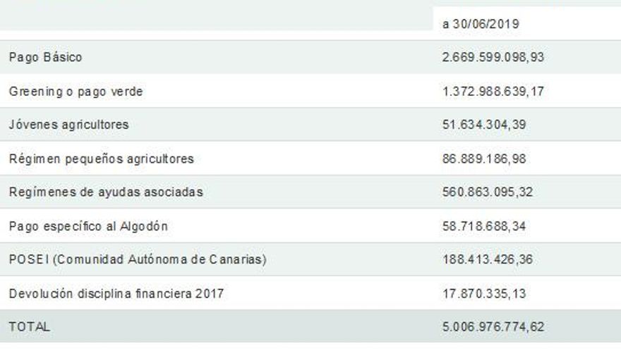 Hasta el 30 de junio, fecha en la que finaliza el plazo ordinario para el pago de las ayudas de la PAC, percibirán 5.006 millones de euros que abonarán las comunidades autónomas -coordinadas por el Fondo Español de Garantía Agraria (FEGA) del Ministerio de Agricultura, Pesca y Alimentación- a los beneficiarios. Los agricultores de Castilla-La Mancha percibirán más de 640 millones de euros.