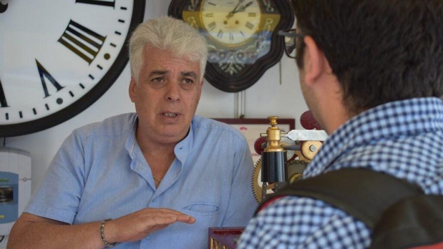 “La labor de ser relojero es echarle horas y horas. Restauro relojes del siglo XIX o del XX, buenos y bonitos. Este de 1911 tiene pintura basada en la original, está limpio y engrasado y funcionando perfectamente”, explica mientras muestra uno de los relojes que restaura. Señala también que durante la pandemia ha tenido “tanto trabajo o más que en cualquier año”. “He podido pasar más tiempo en el taller que en la tienda”, añade sobre estos últimos años.