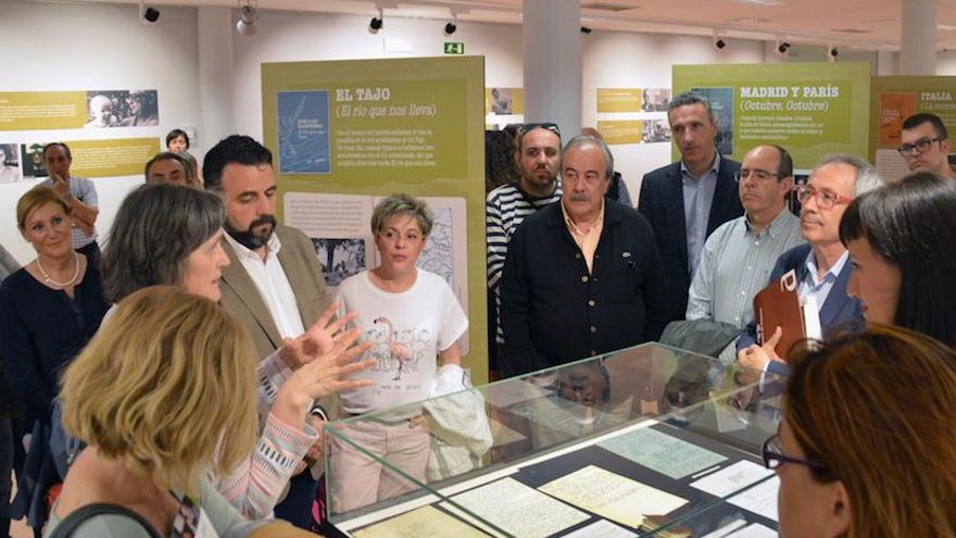 La muestra sobre Sampedro, en la que ha colaborado Olga Lucas, legataria de su obra, engarza sus libros, que son su principal legado literario e intelectual, con otro tipo de objetos que forman parte de su producción bibliográfica. Las geografías literarias de Sampedro se adentran en su “taller literario”, “en su forma de escribir, en los paisajes que inspiraron su obra, en los momentos que marcaron su vida, en su diálogo permanente con su tiempo y con las imágenes que rescatan y hacen presente el pasado”, explican desde el Ayuntamiento azudense. El pasado miércoles se celebró una mesa coloquio en la que participaron Olga Lucas, quien fue la compañera del novelista; Juan Cruz, escritor y periodista de ‘El País’; y J. Manuel Lucía, catedrático de Literatura y secretario de la Asociación de Amigos de José Luis Sampedro. Los tres repasaron la trayectoria literaria del autor de ‘Octubre, octubre’, así como la vigencia de su prosa.