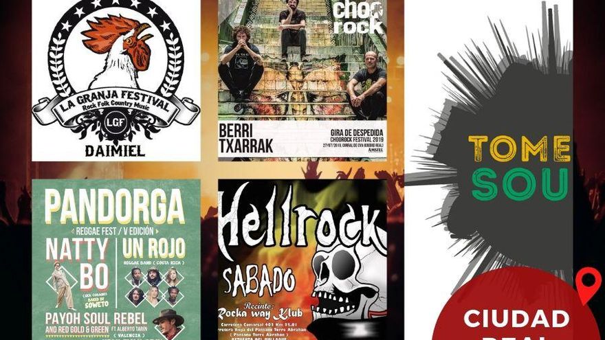 En julio la música se concentra el sábado 27 con la celebración de la quinta edición del Pandorga en Ciudad Real y del ChooRock Festival en Corral de Calatrava. El primero será a ritmo de reggae y contará con un espacio infantil; mientras que el segundo, tal y como su propio nombre indica, será a ritmo de rock.