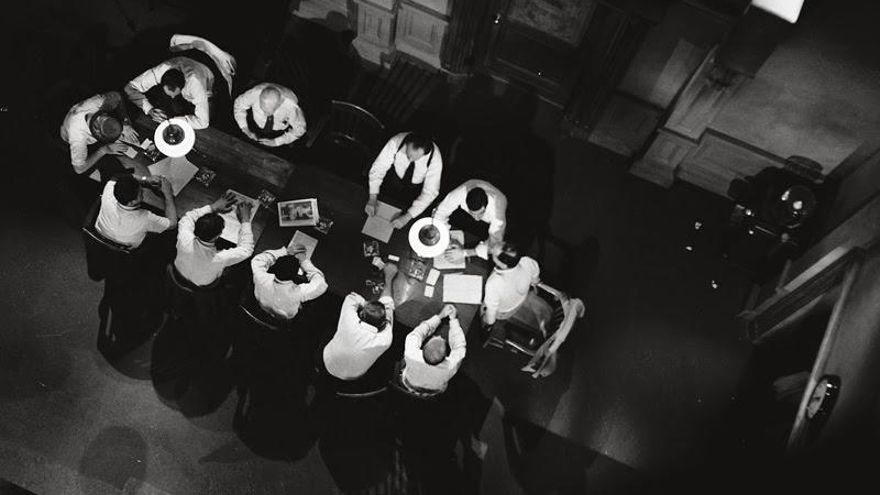 Es el arranque de una de las mejores narraciones cinematográficas que se han hecho sobre la relatividad de los denominados “hechos probados”. Arropado por un reparto excepcional (todos ellos sin nombres propios en la película) cuya solidez descansa sobre un austero Fonda y un tremendo Lee J. Cobb, Lumet abre la caja de pandora sobre cuestiones sociales nada habituales en el cine de los años 50, emanadas de la propia infancia maltratada del acusado y de su pertenencia a un barrio suburbial azotado por la violencia. Casi en tiempo real, el miembro del jurado número 8 comienza a desgranar una por una las pruebas del caso y a ofrecer al resto de los personajes una oportunidad para reconsiderar lo que se ofrece como un veredicto precipitado y sometido a prejuicios.