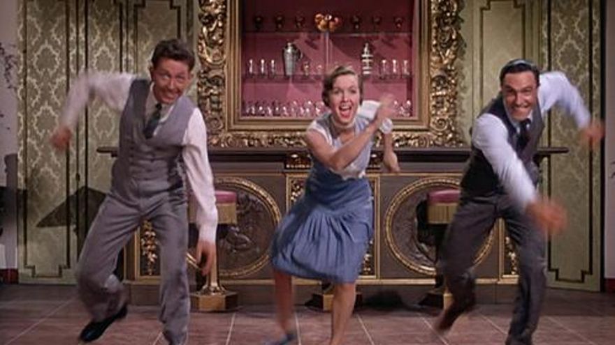 Nº 15. 'Cantando bajo la lluvia', de Stanley Donen y Gene Kelly (1952). “Es la única película que tengo. Es una copia muy buena en 16mm. La proyecto cada dos meses para mantenerme de buen humor”. Así se refería Woody Allen a esta fresca y arrebatadora película de Stanley Donen en su negra Delitos y Faltas. De hecho, toda la cinta protagonizada por Gene Kelly (el tipo con la cara más simpática del Séptimo Arte) está recorrida por una vitalidad y un optimismo tan extrañamente convincentes y contagiosos que no hay cínico en este planeta que haya logrado escapar de su ‘alegría de vivir’. Más allá de su condición de obra maestra en el apartado del musical, de su espectacularidad y de los charcos enamorados de la secuencia de 'Singin' in the rain', 'Cantando bajo la lluvia' es una película que conoce los resortes de la comedia más elaborada y es también un testimonio histórico fascinante. Su retrato del paso del cine mudo al sonoro es intemporal, tremendamente divertido y cruel (esa secuencia donde Kelly y Jean Hagen se intercambian las voces) y sus protagonistas (Donald O’Connor, Debbie Reynolds y Kelly) están deliciosamente entregados a la causa: rescatarnos del mundanal ruido y sus cuitas.