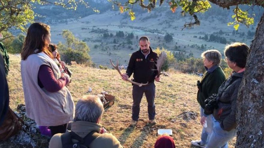 “A lo largo de cinco horas llevamos a los visitantes a conocer nuestro bosque a través de los ojos del ciervo ibérico, vamos observando los distintos signos que deja en el monte, cuáles son sus estrategias de seducción y cómo ganan su derecho a reproducirse”, resume Rodríguez.