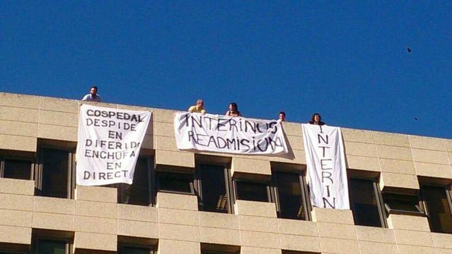En la misma línea, trabajadores públicos se encerraron en la tarde del miércoles 14 de mayo en la sede regional en Guadalajara, tal como informa Comisiones Obreras, para protestar contra las políticas laborales del Gobierno regional en torno al empleo público. Con un despliegue de pancartas, que fue retirado por el personal de seguridad, conductores, funcionarios interinos no readmitidos y sindicalistas de Comisiones Obreras denunciaban que Cospedal “despide en diferido y enchufa en directo”.