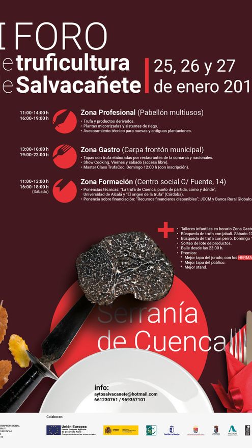 Una parte importante de este foro es la formativa, por ello el sábado se celebrará el curso ‘La Trufa de Cuenca: dónde y cómo’, que será impartido por la Universidad Internacional Menéndez Pelayo de Cuenca. A lo largo de todo el sábado se celebrarán una serie de ponencias sobre la truficultura, desde las condiciones ambientales para el cultivo de la trufa negra hasta la caza de la trufa con jabalí y con perro, pasando por las líneas de financiación pública y privada para estos proyectos.