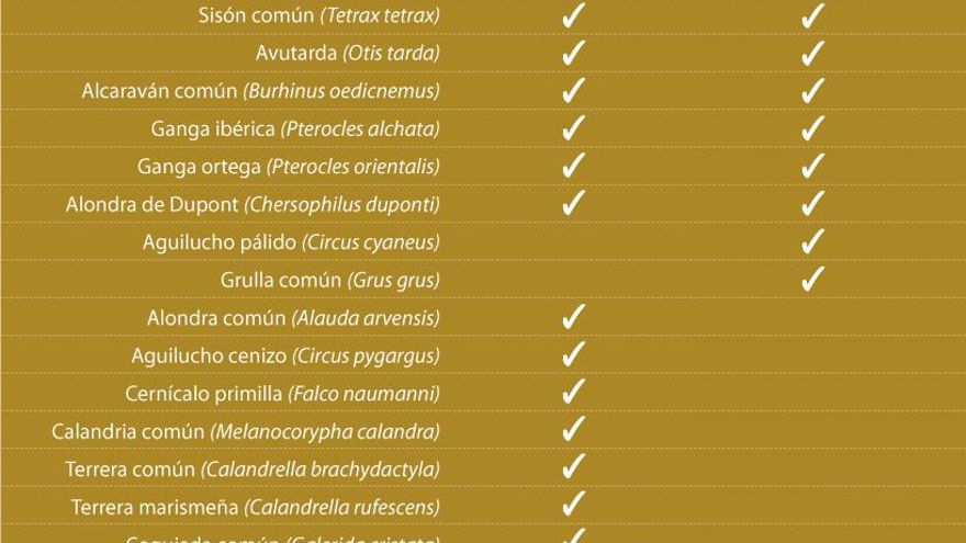 Castilla-La Mancha, en concreto, es uno de los últimos refugios para estas especies. Alberga el 40% de la población europea de avutarda y ganga ibérica y entre el 10-20% de alcaraván. El 35% de la población mundial de sisón habita en las estepas manchegas.