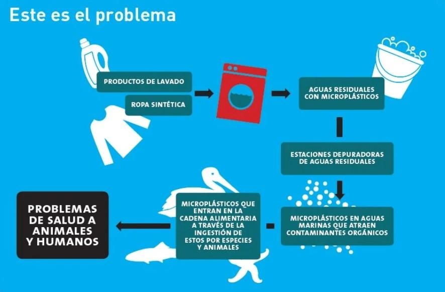 Pero, como advierten desde el proyecto MERMAIDS Life+ es, el problema es que esa ropa de plástico genera millones de fibras que acaban en los ecosistemas. Cada vez son más las voces que avisan del impacto de la ropa de plástico. Incluida la moda, que lleva algún tiempo alertando de los peligros del poliéster. Las fibras sintéticas que liberan el desgaste y el roce de las prendas en la lavadora es una fuente preocupante de microplásticos. Y los sistemas de depuración de aguas residuales no son capaces de retener estas fibras que acaban vertidas en ríos, lagos y el mar.