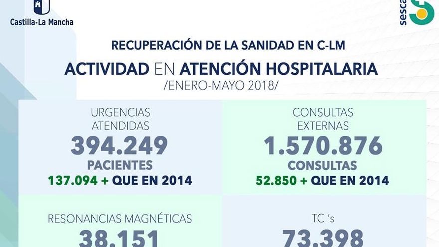 “Incrementos tan notables de actividad van acompasados de disminuciones proporcionales de las listas de espera, que es lo que está registrando nuestro servicio de salud en los últimos meses”, ha afirmado Leal, quien ha añadido que estos datos están íntimamente relacionados con el aumento presupuestario que el Gobierno de Emiliano García-Page está realizando en la sanidad castellano-manchega, cerca de un 14 por ciento más desde el inicio de la legislatura.