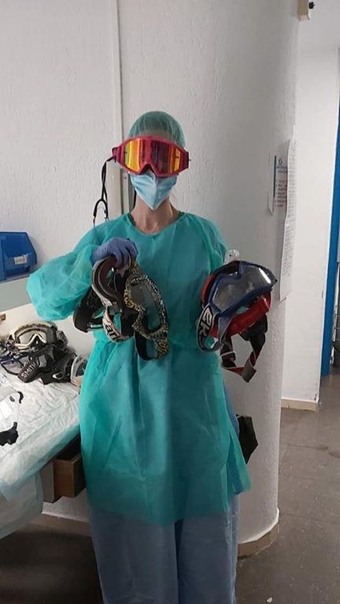Gafas de moto enviadas a los sanitarios del Hospital de Guadalajara