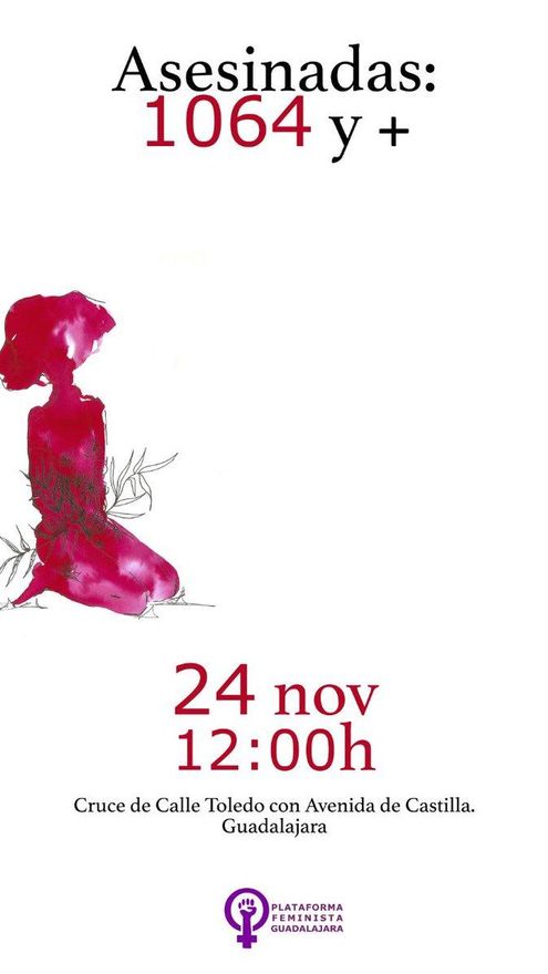 Las actividades contra la violencia de género culminarán esta tarde con una concentración convocada por la Plataforma Feminista de Guadalajara a las 20.30 horas en la Plaza de Santo Domingo.
