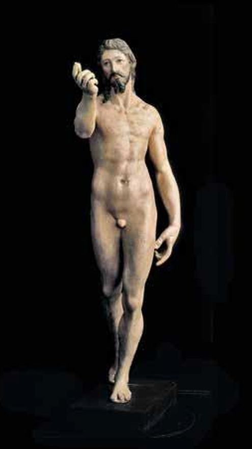 De su lado, la pieza escultórica 'Cristo resucitado' o 'La ascensión de Cristo' coronaría el altar de la capilla provisional del Hospital de Tavera -entre 1595 y 1598-, para la que El Greco trazó y realizó un tabernáculo y custodia, probablemente sobre el modelo doble del Monasterio del Escorial.