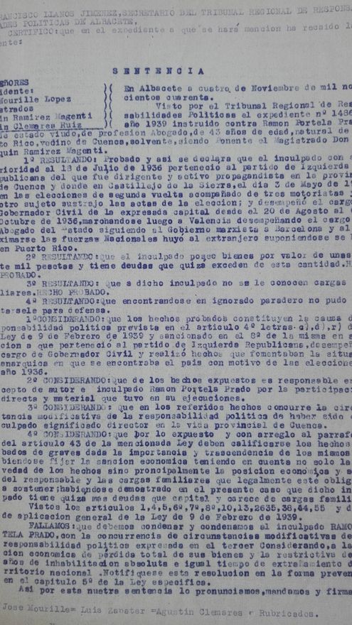 Otros documentos y fotos, en cambio, hacen referencia a incautaciones de bienes que el franquismo realizó contra los afines a la República. En Cuenca se conserva el fondo regional del Tribunal de Responsabilidades Políticas. “Tienen todos los expedientes de Cuenca y de las provincias limítrofes - por ejemplo Albacete - que sufrieron represión durante el régimen de Franco”.