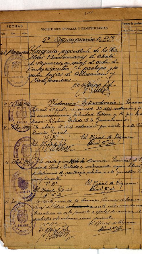 En Toledo también se custodian expedientes de presos de la prisión de Ocaña, represaliados republicanos, que fueron condenados a trabajos forzados, entre otros la construcción de la Academia de Infantería de Toledo.