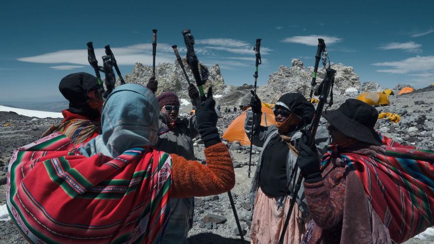 Las 'cholitas escaladoras' de Bolivia son un grupo de mujeres indígenas de entre 24 y 50 años que escalan con sus vestidos típicos diferentes montañas de América Latina. Hasta que decidieron tomar las riendas y seguir sus sueños, algunas de ellas eran cocineras de alta montaña. Veían cada día cómo los hombres subían las cimas de las montañas bolivianas y ellas se tenían que quedar abajo, esperándolos.