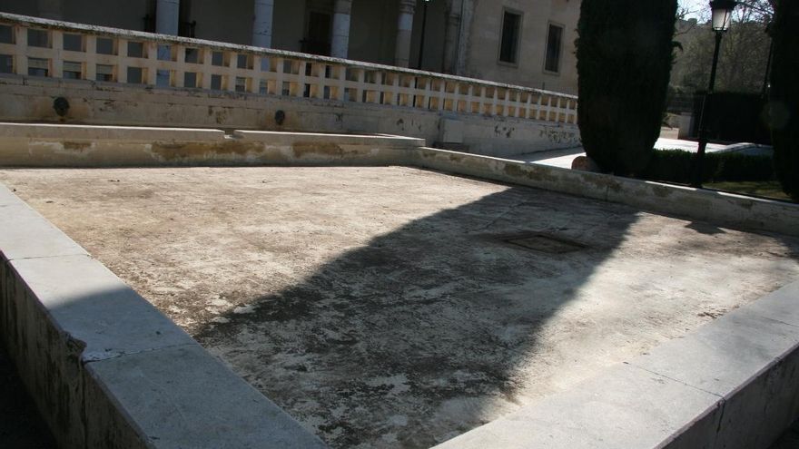 Además, la acumulación de suciedad es generalizada, con zonas ajardinadas descuidadas y los setos que forman el laberinto vegetal llenos de huecos por la desaparición de plantas que no han sido repuestas. “Ahora ya se puede entrar y salir casi por cualquier sitio”, ha ironizado Cuevas. Otro tanto ocurre con el estanque situado a la entrada, completamente vacío y sucio.