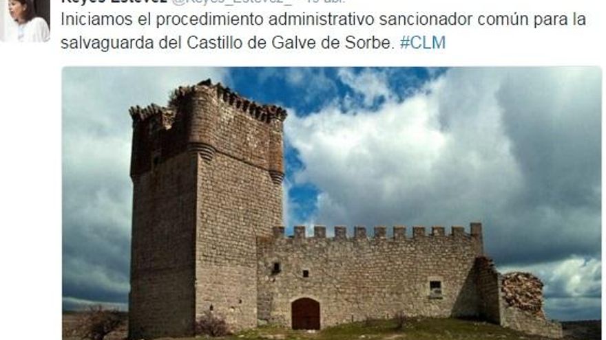 La consejera de Educación, Cultura y Deportes de Castilla-La Mancha, Reyes Estévez, ha anunciado a través de su perfil personal en Twitter que el Gobierno regional ha iniciado el procedimiento administrativo sancionador para salvaguardar el castillo de Galve de Sorbe, en la provincia de Guadalajara.