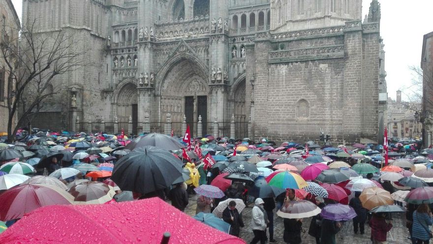 La lluvia no ha impedido que miles de personas hayan participado este sábado en las manifestaciones convocadas por CCOO y UGT en defensa de las pensiones en las cinco capitales de Castilla-La Mancha. Según datos de los convocantes han asistido unas 26.000 personas a las manifestaciones en las capitales castellano-manchegas: 10.000 en Toledo, más de 7.000 en Albacete, 3.000 en Ciudad Real, 1.000 en Cuenca y 4.500 en Guadalajara.