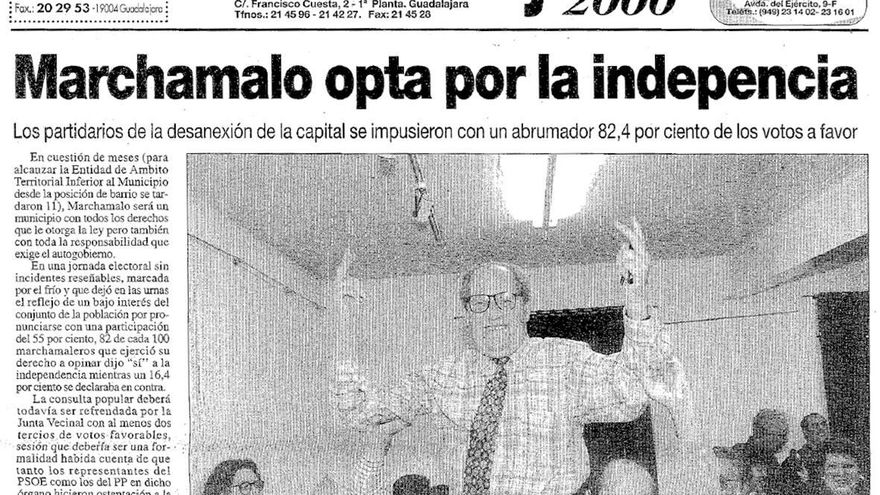 “En cuanto al pueblo de Marchamalo le han dado voz, ha emitido su veredicto. Con esta consulta ha quedado bien claro que el pueblo está deseando separarse de Guadalajara para iniciar la andadura que hará que sea uno de los mejores pueblos de la provincia en un plazo muy cercano”. Con este jubiloso mensaje celebraba Fernando Olalla, alcalde pedáneo de Marchamalo, la consecución de la independencia para la localidad guadalajareña en noviembre de 1996, tras un referéndum en el que los marchamaleros decidieron mayoritariamente construir su futuro sin la tutela de la ciudad de Guadalajara.