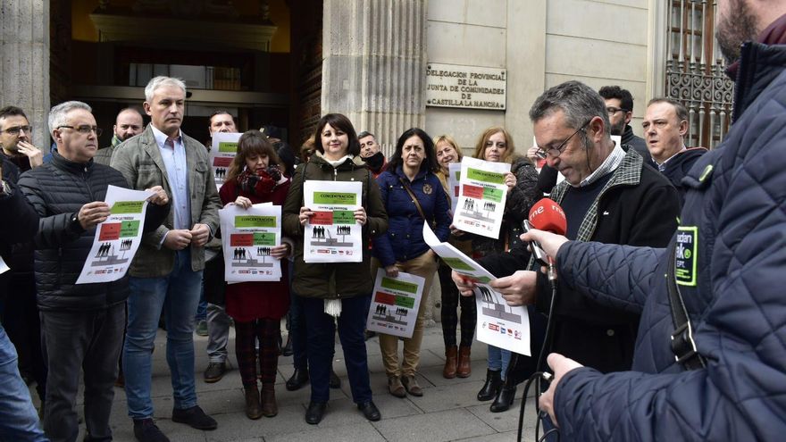 Los sindicatos UGT, CCOO, CISF, STAS y FSES se han concentrado en las cinco capitales de provincia de Castilla-La Mancha para que el Grupo Parlamentario Socialista retire la enmienda de consolidación de altos cargos de la Ley de Medidas Administrativas y Tributarias que acompaña a los Presupuestos regionales de 2020 y que se debate mañana en las Cortes regionales. Los sindicatos instan además al Gobierno regional a convocar la Mesa General de Negociación de la Función Pública y han anunciado más movilizaciones si finalmente la enmienda sale adelante.
