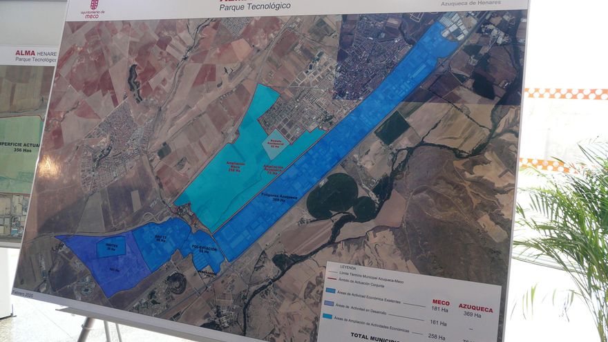 La superficie total de actuación se eleva a más de tres millones y medio de metros cuadrados, el equivalente a 356 hectáreas, 975.000 metros cuadrados en Azuqueca y 2.605.000 metros cuadrados en Meco. En todo caso, el área logística alcanzará una superficie de suelo para actividad económica de 10.685.000 metros cuadrados, lo que equivale a 1.068 hectáreas. En Meco, todo el desarrollo será destinado a actividad económica mientras que Azuqueca destinará parte del terreno de aprovechamiento para ámbito residencial.