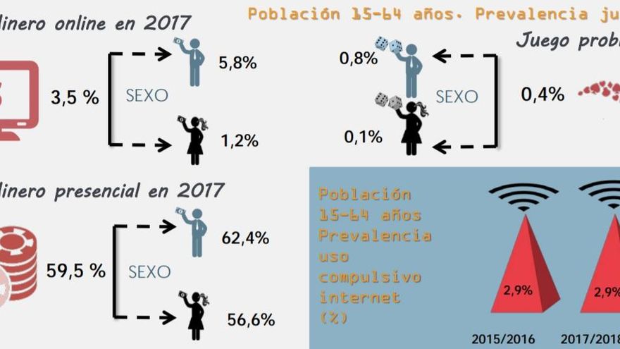 Según los últimos datos que recoge la Memoria del Plan regional de Adicciones, en 2017 se atendieron en Castilla-La Mancha a un total de 322 personas por problemas de ludopatía, de los que 299 eran hombres y 23 mujeres. Además, otro estudio realizado en el año 2015 sobre prevalencia, comportamiento y características de los usuarios de juegos de azar en España indica que los grupos de edad más afectados son las personas con una edad comprendida entre los 25 y los 34 años, así como entre 55 y 64 años.