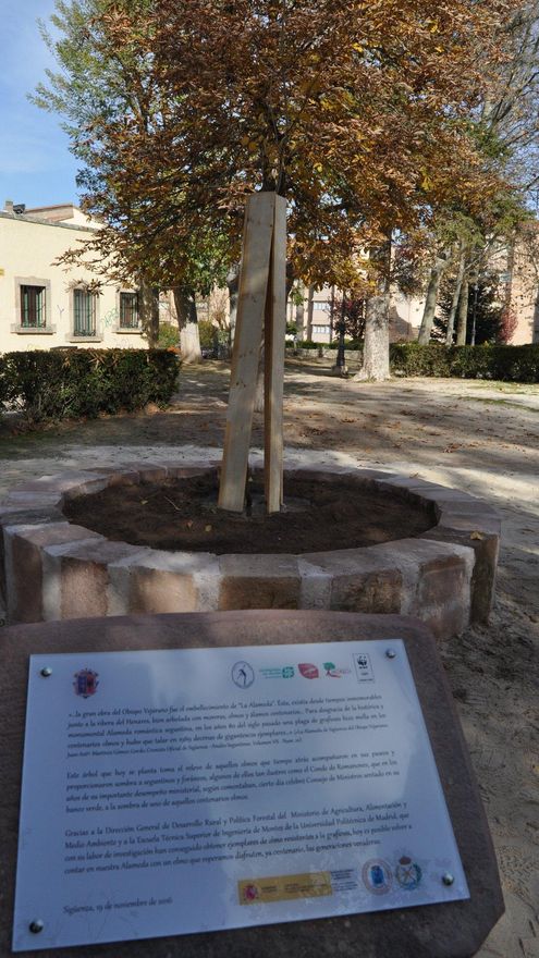 Los seguntinos, por ejemplo, disfrutaron de espléndidos olmos en el parque de la Alameda, hasta que en 1989 la plaga acabó con su historia. Durante los actos que supusieron el regreso de esta especie a la Ciudad del Doncel, Pilar Martínez Taboada, cronista oficial de Sigüenza, explicó: “Plantamos un olmo resistente a la grafiosis allí donde antes ya había olmos, en el parque de la Alameda, que pretende ser un Bien de Interés Cultural (BIC). Quiero dejar constancia de la importancia que tiene de conservar este olmo, convirtiéndonos todos en guardianes y amigos de los olmos, lo que pasa por conservar el patrimonio natural de Sigüenza”.