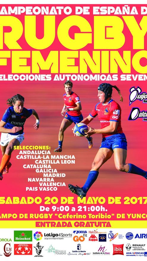 Ocho federaciones autonómicas participarán este sábado en el primer campeonato autonómico de rugby femenino, una cita a la que acudirán los equipos de Andalucía, Castilla-La Mancha, Castilla y León, Galicia, Madrid, Navarra, País Vasco y Valencia. El evento cuenta con el apoyo de la Junta de Comunidades y de la Diputación de Toledo, pero especialmente con el impulso del Quijote Rugby Club de Yuncos y de la Delegación de Rugby de Castilla-La Mancha, que ve la jornada como una oportunidad para impulsar el deporte, especialmente en su modalidad femenina.