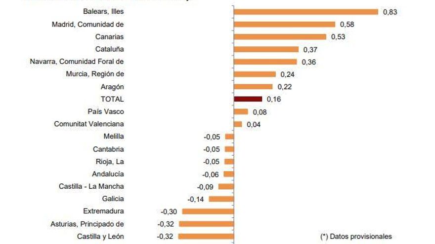 En cuanto a la estadística de población, durante el primer semestre de 2018 la población creció en nueve comunidades autónomas y se redujo en las ocho restantes. Los mayores incrementos en términos relativos, aunque muy bajos, se dieron en Illes Balears (0,83%), Comunidad de Madrid (0,58%) y Canarias (0,53%). En el otro extremo, los descensos de población más acusados se dieron en la ciudad autónoma de Ceuta (-0,35%) y en Castilla y León y Principado de Asturias (-0,32% ambas). La bajada de población en Castilla-La Mancha fue del 0,09%.