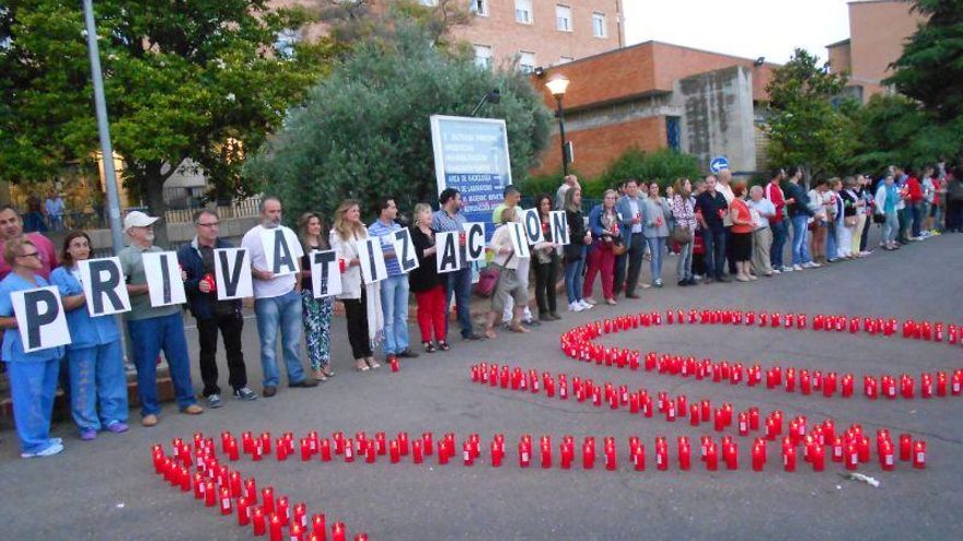 “Tenemos el hospital rodeado” era el claro mensaje que los organizadores mandaban a José Ignacio Echániz, consejero de Sanidad de la Junta, exigiendo una sanidad gratuita, universal y de calidad. “Porque la región no aguanta más, entonces anunciamos que vete, Cospedal” era otra de las consignas más escuchadas. Fuentes sindicales también apuntaban que en todos los hospitales de la región, especialmente en Toledo y Ciudad Real, estaba llevándose a cabo la protesta.