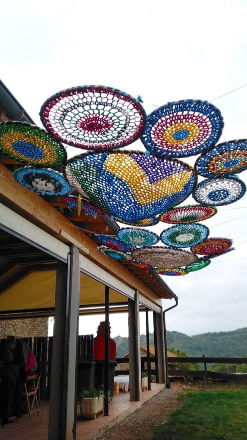 Mari Paz Calvo Zapata, es una artesana de Los Cerralbos, en la provincia de Toledo y miembro de la Asociación ‘Arte en las Manos’. Su labor hasta el estado de alarma ha sido, como ella misma explica “dar sombre a las calles de nuestro pueblo”. Es decir, se encargaba de elaborar toldos mediante la técnica del ganchillo con plástico reutilizado. “Hicimos un taller inicial en el que nos reunimos 50 mujeres, según ha ido pasando el tiempo quedamos 25, y actualmente somos 15 las personas comprometidas con el proyecto”, asegura.