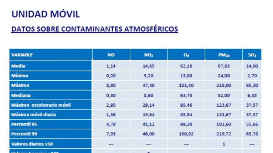 En el informe se incluyen también los resultados que desde el Instituto de Salud Carlos III se han realizado en los captadores instalados en la urbanización El Quiñón, en cuanto a las mediciones de CO (monóxido de carbono), del 1 al 2 de junio, con datos dentro de la normalidad; y de compuestos orgánicos volátiles (COV), del 23 al 30 de mayo de 2016, en el que se observan en algunas mediciones “niveles altos” de benceno, aunque en este último caso indica que el límite establecido en la legislación es de 5 µg/m3 en media anual.
