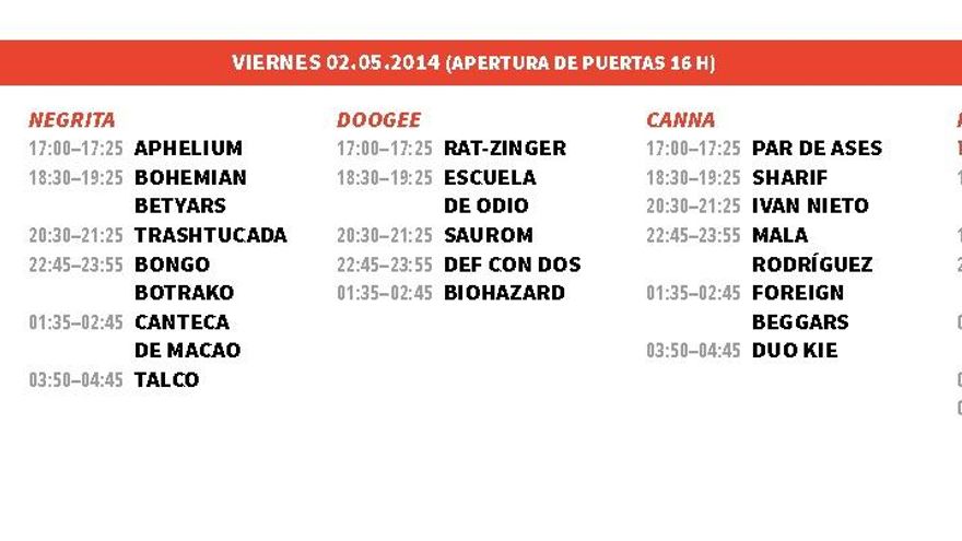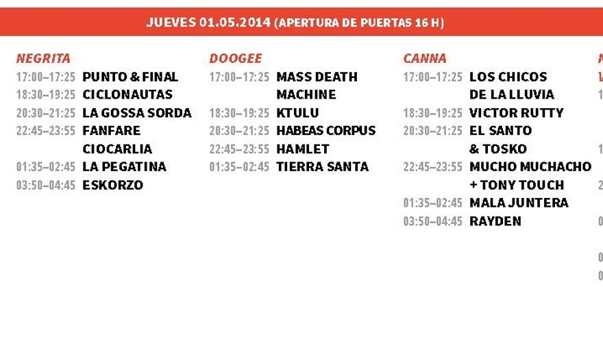 Publicados los horarios oficiales de uno de los festivales más importantes de la región, los asistentes ya pueden ir confeccionando su planning para disfrutar del evento que empezará el 30 de abril en la zona de acampada, en el Red Bull Tour, que, tal como el año pasado, animará a los asistentes en la cercanía.