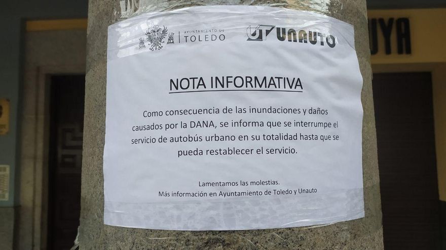 Las imágenes de las cocheras de los autobuses urbanos de Toledo totalmente inundadas, y luego llenas de barro, han circulado por toda España. La situación del servicio de transporte público era tan grave el domingo por la noche, que el lunes simplemente no se pudo ofrecer. El Ayuntamiento toledano anunciaba el lunes por la tarde una solución provisional: veinte autobuses llegarían desde Madrid para poder prestar el servicio ya el martes. Eso sí, al 50% y con horarios toda la semana como si fuera un domingo, pero gratuitos hasta la normalización del servicio. Los autobuses azules de la EMT se podían ver desde primera hora en las calles toledanas.