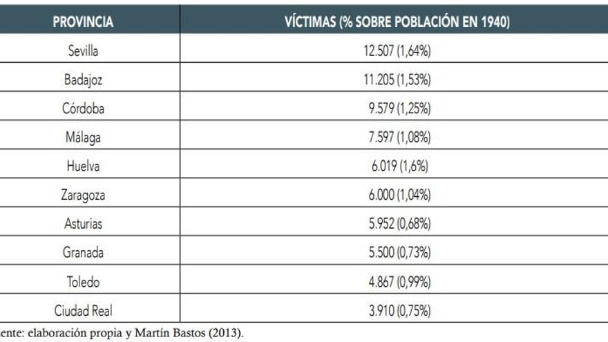 La investigación de 'Mapas de Memoria' ha clasificado a los muertos en cinco categorías: por un lado, los asesinados, las víctimas principalmente de los primeros días de la posguerra; los fallecidos por cumplimiento de sentencia y que fueron fusilados o sufrieron el garrote vil; los que murieron en prisión; los que lo hicieron en emboscadas contra guerrilleros y otras muertes. Así, según los resultados, un total de 2.795 ciudadrealeños murieron por fusilamiento, 766 en prisión, 125 por asesinato extrajudicial y 104 en campos de exterminio. En menor medida, Por emboscada (76) o por garrote vil (13), y por otras causas un total de 31. Sin embargo, en el libro también se advierte de que los números ofrecidos no son completos, ya que han identificado muertes violentas que “no se inscribieron como tales en los registros o que directamente no se registraron”, y esto en el primer mes de la represión.