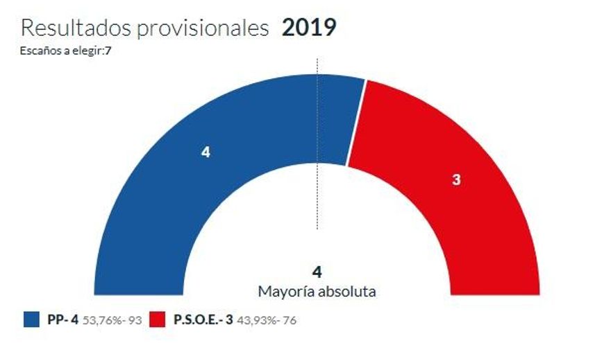 En concreto, de los 183 votos que se registraron el 26 de mayo, 93 de ellos han sido para el PP y 76 para el PSOE liderado por Luis Miguel Muñoz, que no ha conseguido mantener la hegemonía tras seis legislaturas consecutivas -desde 1995- como primera fuerza de este partido y que ha perdido, respecto a las pasadas elecciones, 41 votos cruciales para dar un vuelco a la historia de la localidad.