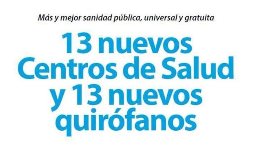 Se da la circunstancia de que el lema utilizado en la emisión de este vídeo, '13 nuevos centros de salud y 13 nuevos quirófanos', es el mismo que está recogiendo el PP en su paneles electorales. Los mismos en los que aparece el hashtag #PresidentaCospedal sin ninguna imagen de la presidenta de Castilla-La Mancha:
