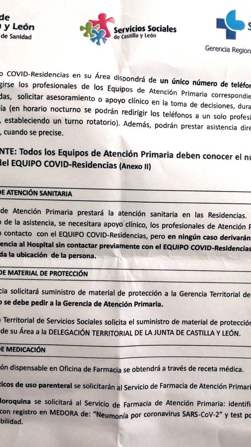 Tres días después, el 26 de marzo, la Junta crea el 'Procedimiento para la atención socio sanitaria en residencias de personas mayores y de personas con discapacidad, ante la crisis sanitaria por el COVID-19'. Era uno de los momentos más críticos por la pandemia, los hospitales de la Comunidad estaban al borde del colapso y había importantes focos en residencias de ancianos de casi todas las provincias. Si estos enfermos ingresaban, y los había por miles, el sistema no lo soportaría.
