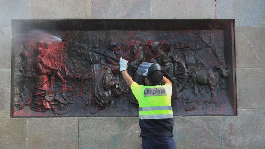 Por la mañana temprano, el trabajador ha retirado la frase “el españolismo es fascismo”, que estaba escrita con spray sobre la base de la estatua. El resto del monumento tardará un par de días en limpiarse, según ha confirmado el consistorio a Europa Press, por la altura que ha alcanzado la pintura. El monumento fue erigido a finales del siglo XIX