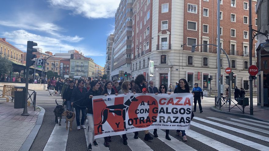 Así, este grupo de personas han salido de la plaza España (en obras) y han llegado hasta la plaza Mayor al grito de 'No es el siglo I, es el XXI' o 'Ni ciervo cazado, ni perro torturado'. Vicky y su hermana María José llevan veinte años manifestándose a favor de los derechos de los animales como sus perros Dana, Poker y Gacha. Vicky lamenta que los galgos sean “abandonados permanentemente” y asegura que salir al campo con los perros es “un riesgo” y supone “exponerte a que te lleves un tiro”.