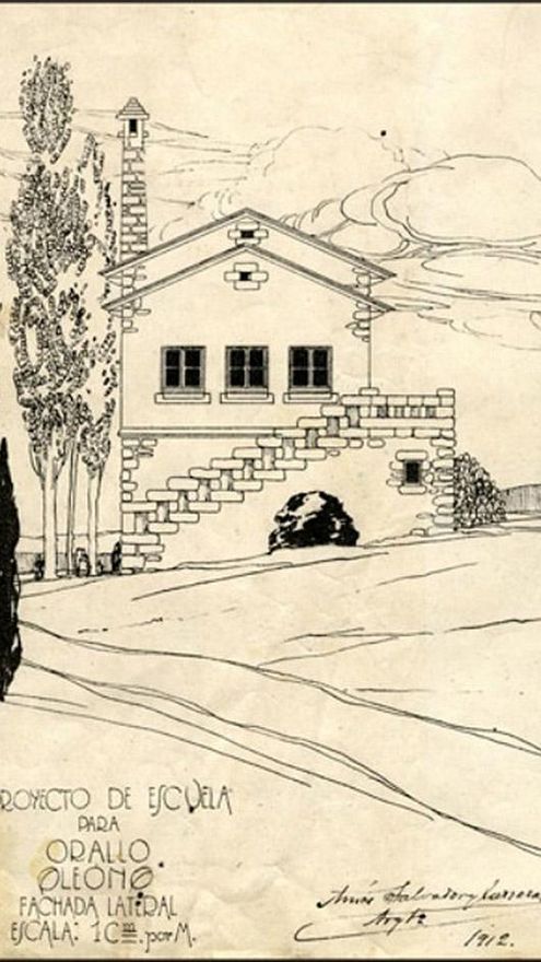 La Escuela de Orallo, fue obra del arquitecto logroñés Amós Salvador y Carreras —bisabuelo del pintor Álvaro Toledo y también tío abuelo del ministro socialista Miguel Boyer, diputado por León en 1910 por el Partido Liberal y ministro de la Gobernacion de la República entre febrero y mayo del 36 con Azaña— fue promovida en 1914 por la Liga, los vecinos y el apoyo económico de Octavio Álvarez Carballo y Prieto, poderoso terrateniente, inversor y político de gran autoridad en la comarca de Laciana. El edificio se construyó en memoria de don Secundino Gómez, tío de Álvarez Carballo y natural de Orallo.