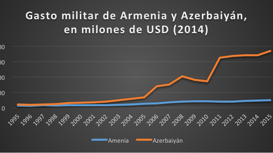 En l'origen d'aquest canvi d'estratègia es troba el boom en els ingressos per les exportacions de petroli que ha viscut l'Azerbaidjan des de 2005, multiplicant el seu PIB per cinc durant l'última dècada. Bona part d'aquests ingressos han estat destinats a incrementar el pressupost militar (Gràfics 2 i 3) -un 444% entre 2006 i 2015-. Per la seva banda, Armènia ha incrementat la seva despesa militar en un 102% durant el mateix període.