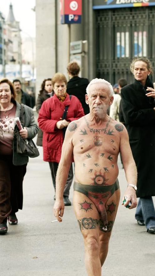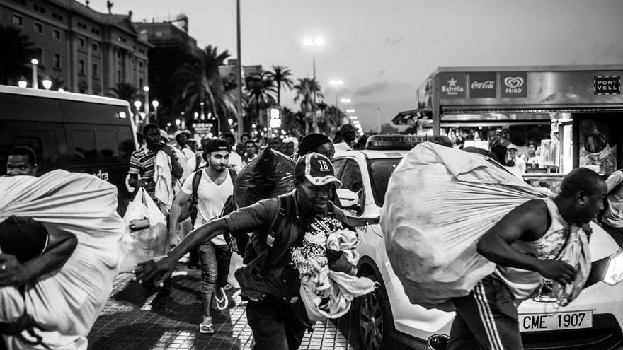 En muchas de las imágenes recuperadas por Feriche, lo realmente prohibido es la escena que se retrata. Es especialmente sugerente la de Esteban, un conocido transeúnte que se paseaba no hace tanto desnudo por el centro, hasta que Barcelona vetó el nudismo en sus calles el 30 de abril de 2011. Otras escenas, como la de los manteros en el Paseo Marítimo o la prostitución en los alrededores del Camp Nou, retratan esa ciudad que lucha por su supervivencia al margen de la ley.