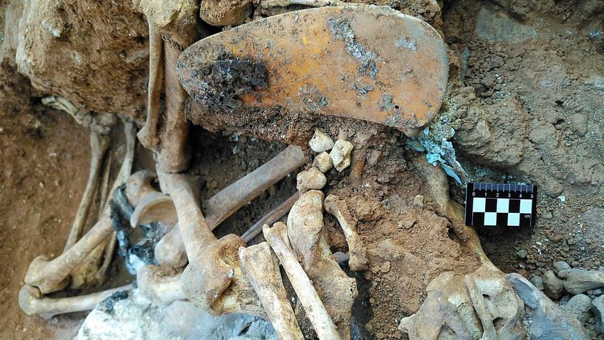 Los individuos estaban dispuestos uno encima del otro. El cráneo que está bien conservado tiene un orificio de entrada de una bala en el hueso occipital. En el maxilar hay algunas piezas dentarias de oro. El equipo de arqueología sigue trabajando en el solar haciendo el control de los rebajes de tierra por si se localizan otros restos arqueológicos de este mismo momento o de fases históricas anteriores.