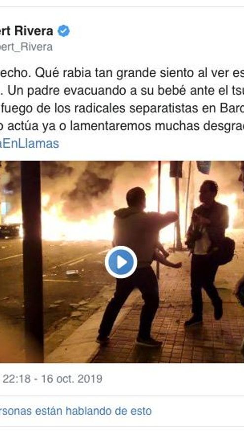 Una de las imágenes de los altercados de estos días en Barcelona ha sido la de un padre que, con su bebé, salió de su casa porque se estaban quemando contenedores y temió el fuego de uno de ellos alcanzara su vivienda. En una entrevista en Rac1, este vecino de la capital catalana ha arremetido con dureza contra periodistas y políticos, en especial el líder de Ciudadanos, Albert Rivera, por haber difundido el vídeo sin haber hablado con él.