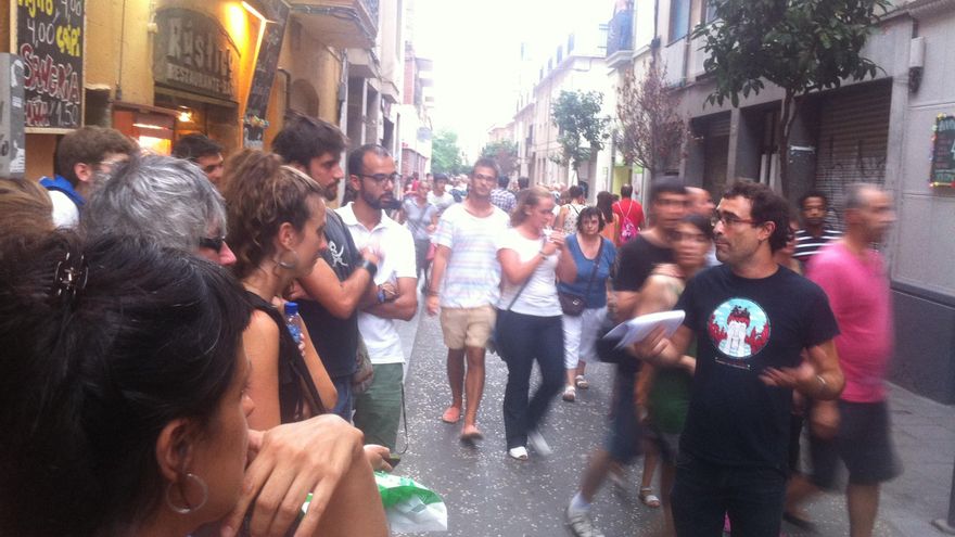 Davant de l'antiga Teixidors a Mà, un veí del districte va intervenir per explicar la història de L'Espigoladora, al barri del Camp d'en Grassot, fundada pel seu besavi l'any 1907, al carrer Roger de Flor. La cooperativa va durar fins el 1988 i ell va arribar a treballar-hi. “Era un mecanisme d'unitat popular”, assegura, perquè s'hi trobaven militants des de la CNT fins a la UGT.