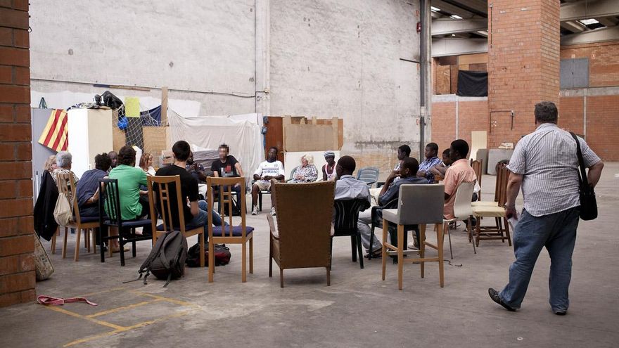 La asamblea se acerca a su fin y Carlota apela a la unidad. Uno de ellos asiente convencido. “Pase lo que pase, debemos permanecer unidos, porque si no perdemos la fuerza”, les empuja esta vecina. Con el desalojo de hace un año, el colectivo quedó disperso. Quizás esta fuera la intención del Ayuntamiento, piensa Andreu. Pero, pese a la diáspora, la sombra del drama humanitario sigue sobre este barrio y sobre la ciudad.