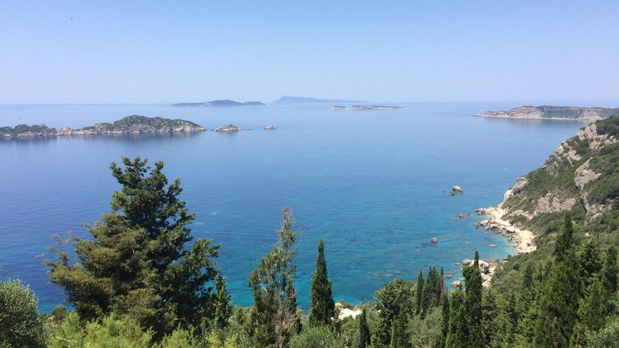 Aquesta enorme illa, la més gran de les jòniques, situada a 75 quilòmetres de la popular bota d'Itàlia i a gairebé tir de pedra d'Albània, no respon al prototip. Corfú pot presumir de posseir algunes de les platges més espectaculars de tota Grècia i, com en moltes altres illes d'aquest país, al seu territori també floreixen les oliveres (s'han comptabilitzat fins a tres milions) i els xiprers. Però aquí s'acaben les semblances. A Corfú gairebé no hi ha restes arqueològiques. I, a diferència de l'aridesa que caracteritza la majoria de les illes gregues, el paisatge està cobert de vegetació. Res estrany si es té en compte que aquesta part de la Mediterrània compta amb un règim de pluges superior a l’habitual. Però no cal espantar-se: a l'estiu es pot gaudir del sol i les altes temperatures. I pel continu grinyolar de les cigales.