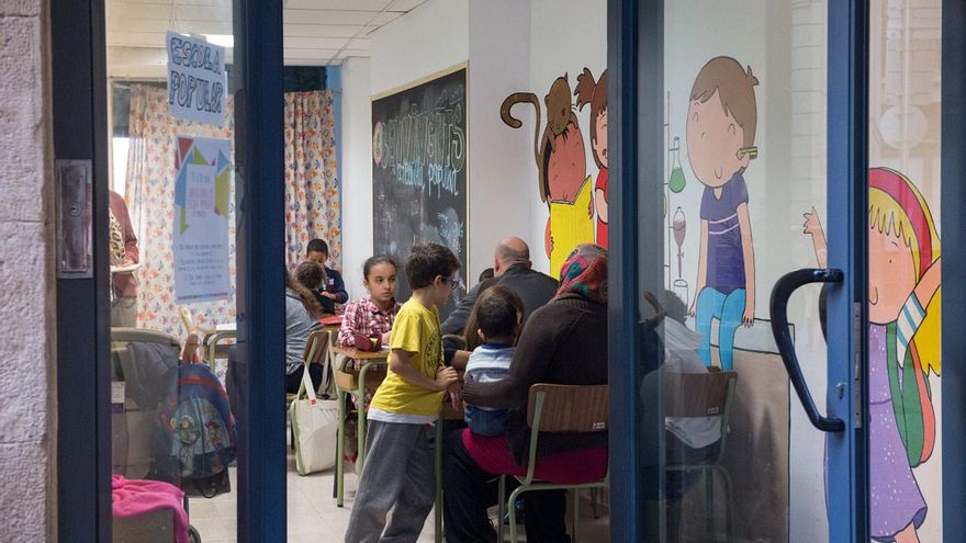 “Una de nuestras fijaciones es dar una función social a los edificios que ocupamos, y esta escuela popular responde a esto, a una de las necesidades de un barrio con mucho paro, pobreza e inmigración”, expresa Bernat Sorinas, portavoz de la Obra Social de la PAH en esta ciudad. Quizás no son consideradas carencias graves, pero no tener una habitación para estudiar en silencio en casa o nadie a quien preguntarle las dudas son factores que minan poco a poco la moral de los niños. La pobreza pesa en la mochila escolar y los deberes lo pueden agravar.